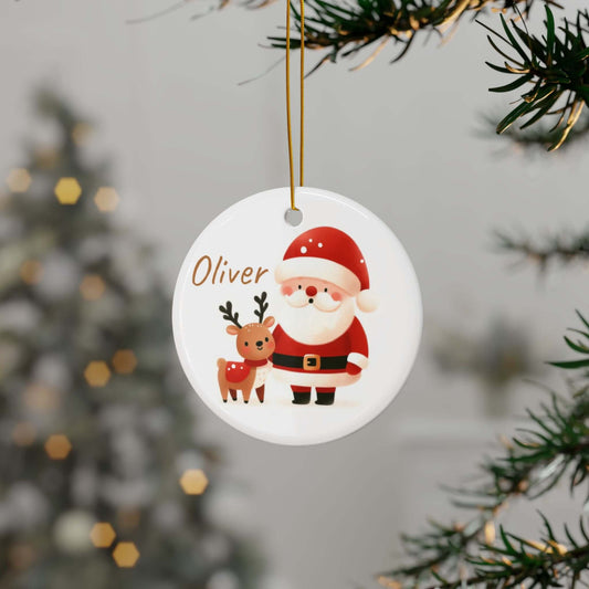 Personalized Santa and Reindeer Christmas Ceramic Ornament
