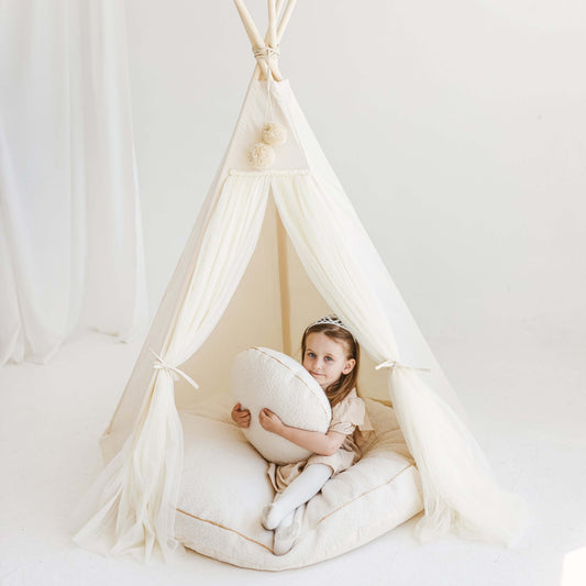 MINICAMP Extra Large Kids Teepee Tent with Pom Pom Decor